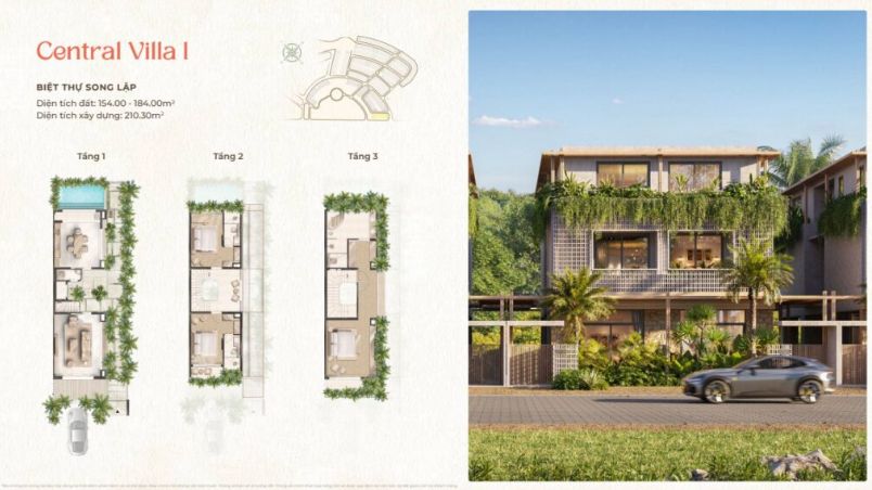 Cho thuê biệt thự cao cấp tại Central Villa 1 – La Tiên Villa – hướng Tây Bắc, thuộc khu compound trung tâm, gần đồi cảnh quan và các trục lễ hội.