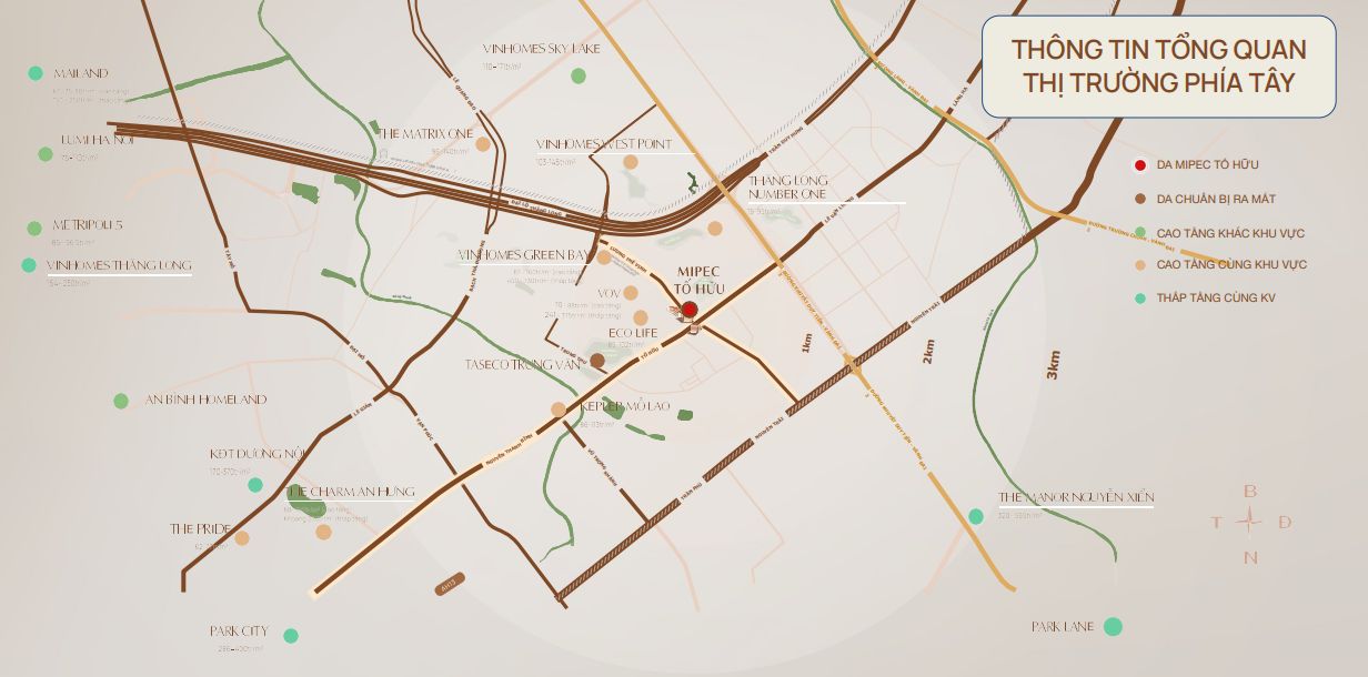 - Bán kính ~3km: Big C Thăng Long, Keangnam, Royal City, SVĐ Mỹ Đình, AEON Hà Đông
