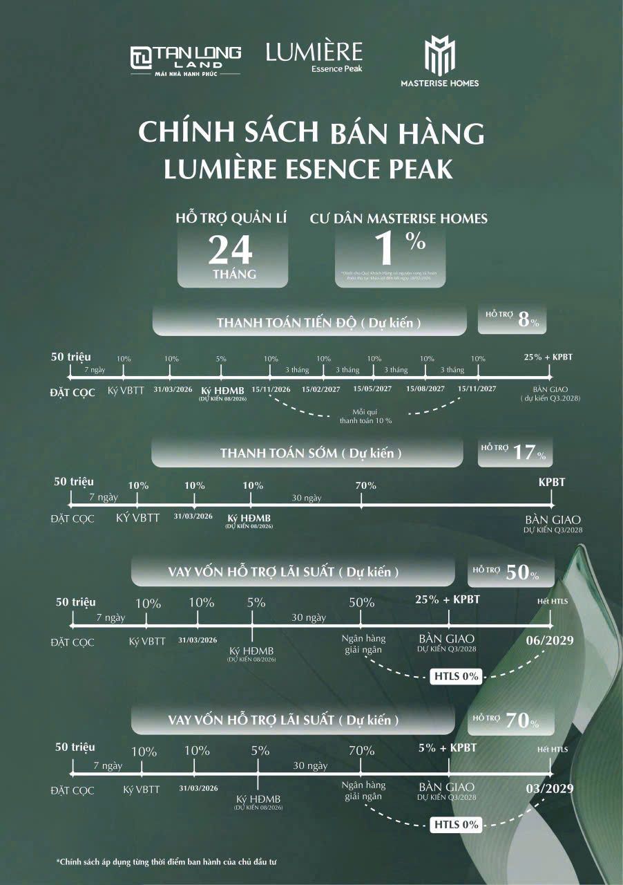 - Giá bán chung cư LUMIÈRE Essence Peak Cổ Loa mới nhất CĐT