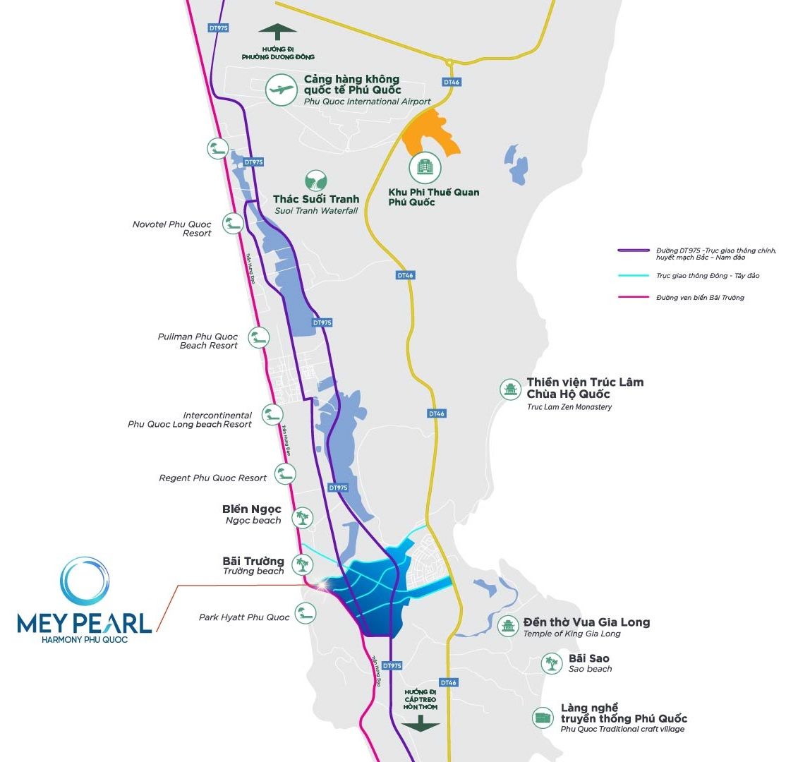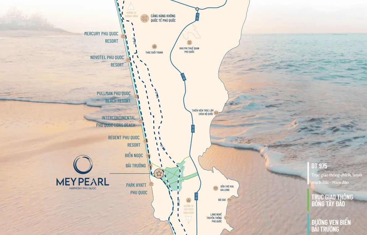 Vị trí Meypearl Harmony Phú Quốc được xem là một trong những lợi thế nổi bật nhất, khi dự án tọa lạc tại Bãi Trường – cung đường biển đẹp bậc nhất đảo Ngọc, nơi hội tụ những khu nghỉ dưỡng sang trọng và không gian sống ngập tràn năng lượng tự nhiên. Đây không chỉ là tọa độ vàng của Phú Quốc mà còn là tâm điểm kết nối giữa thiên nhiên, du lịch và đô thị kiểu mẫu Meyhomes Capital.