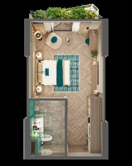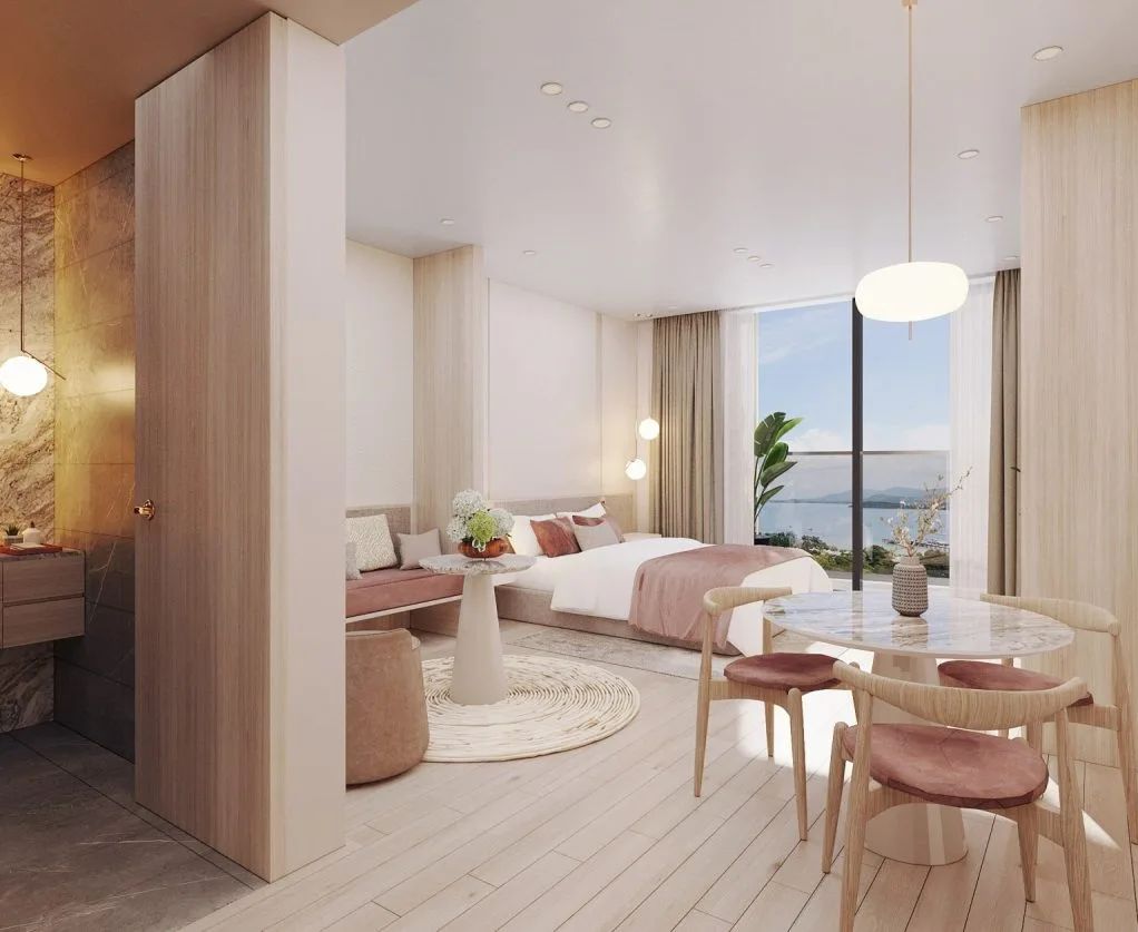 Studio+ sở hữu diện tích nhỉnh hơn, tích hợp thêm khu vực làm việc hoặc không gian sinh hoạt mở, mang lại trải nghiệm linh hoạt và tiện nghi hơn. Phù hợp với chuyên gia trẻ hoặc khách hàng muốn kết hợp nghỉ dưỡng và làm việc tại Phú Quốc.