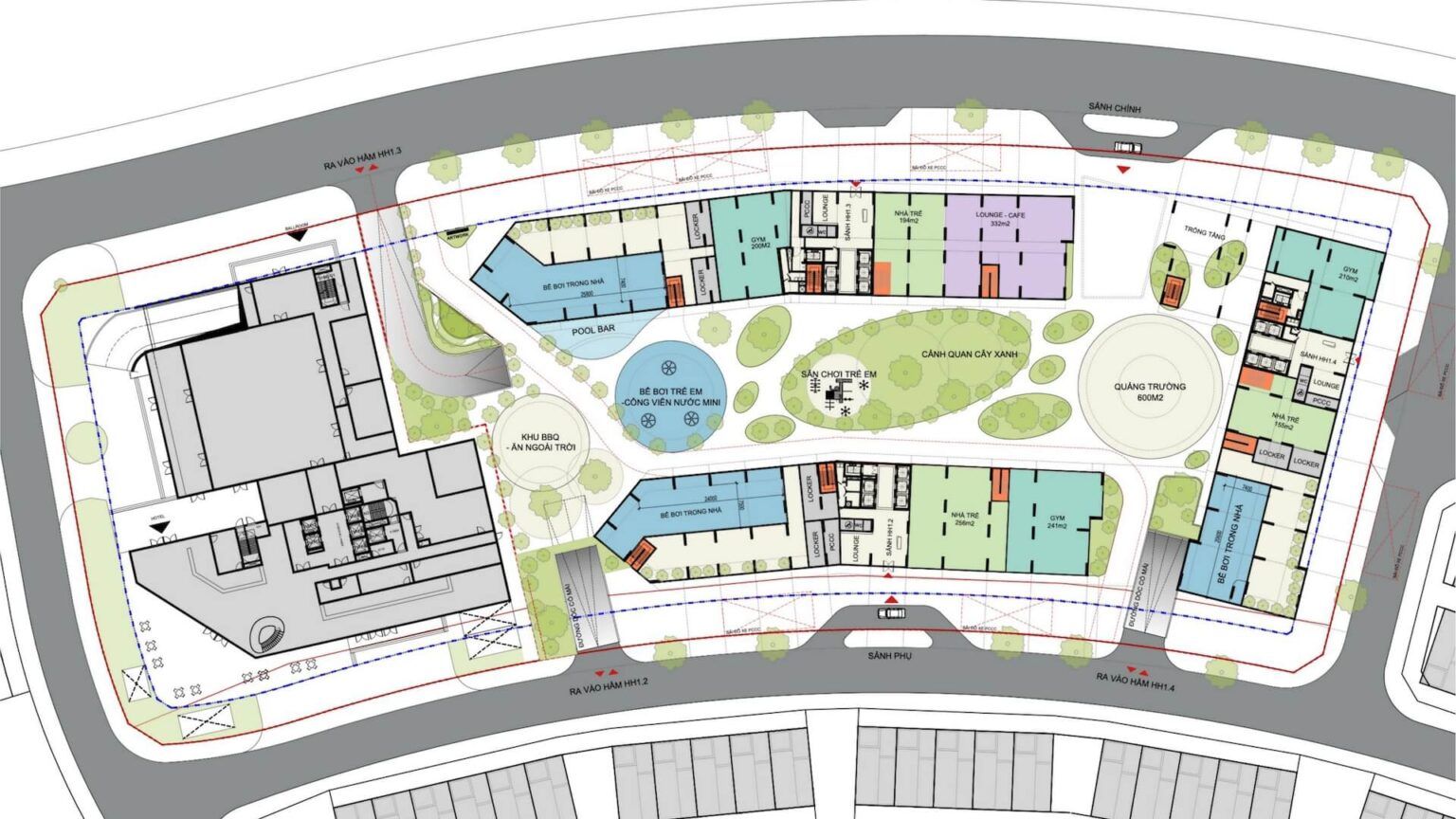 Không gian còn lại: Dành cho cảnh quan, hồ bơi trung tâm, tuyến phố thương mại và chuỗi tiện ích cao cấp