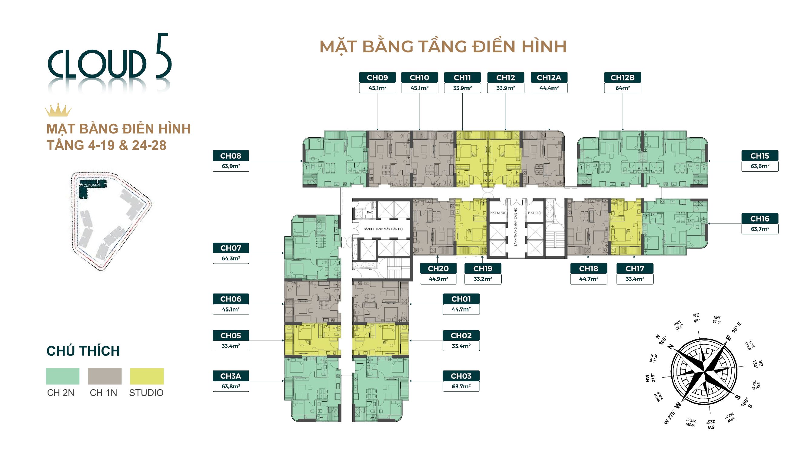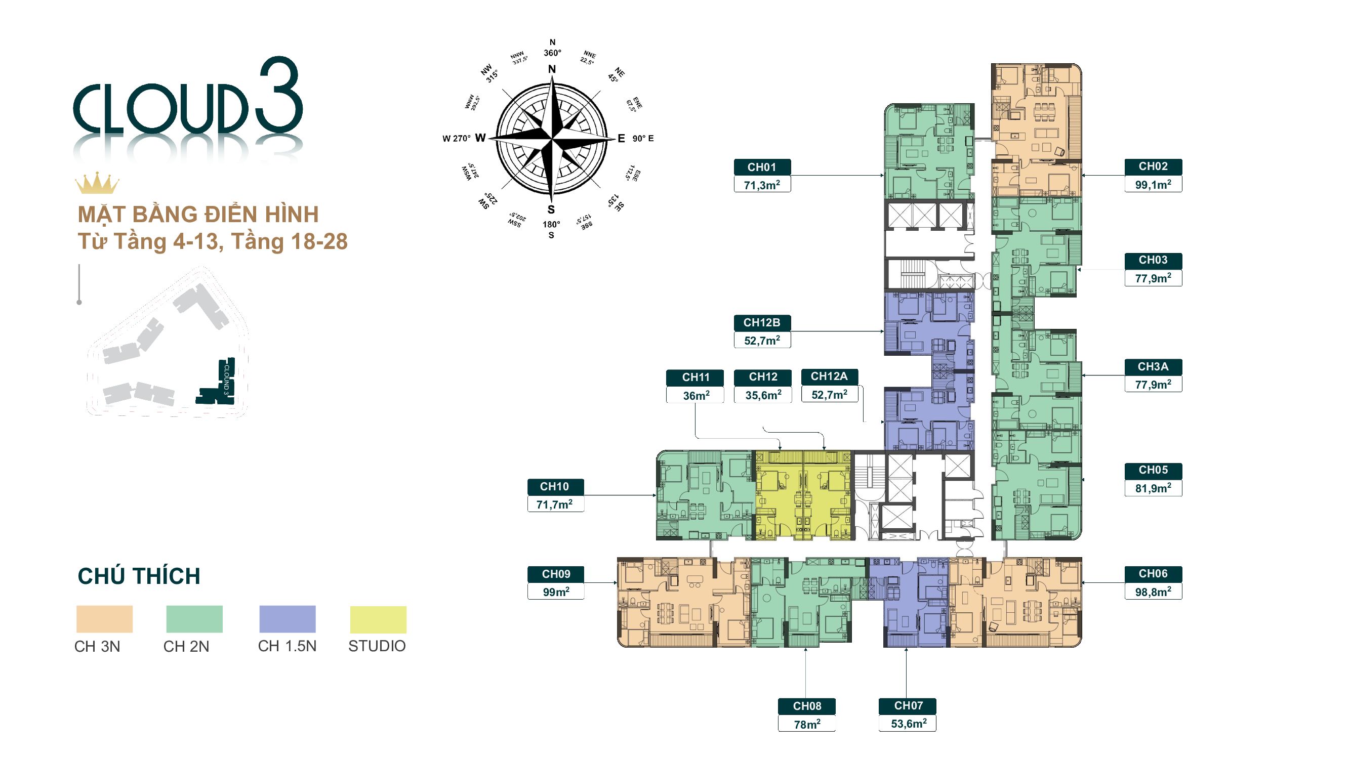 | Mặt bằng khối tháp | - 3 tầng hầm: 2.000 chỗ xe máy & 1.000 chỗ ô tô - Tầng 1–3: Shophouse khối đế - Tầng 4–28: Căn hộ cao cấp - Tầng 29: Penthouse & Duplex |