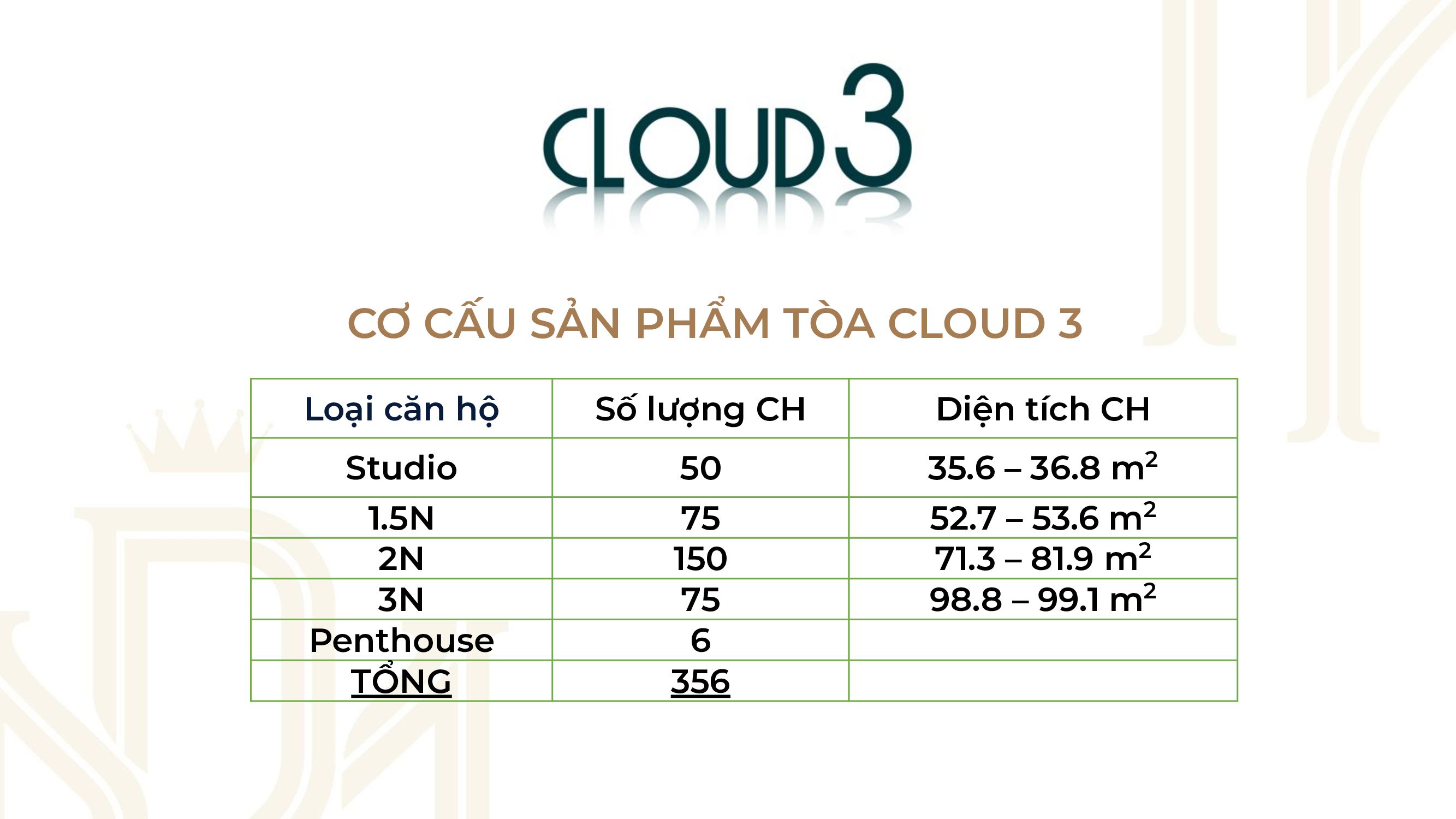 | Khu căn hộ cao tầng | 04 tòa chung cư cao 29 tầng – hơn 1.600 căn hộ cao cấp gồm Studio, 1PN, 2PN, 3PN, Duplex, Penthouse |