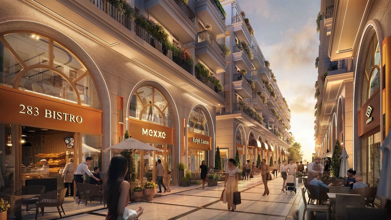 Việc tích hợp trung tâm thương mại và chuỗi shophouse tạo nên một không gian mua sắm – ẩm thực – dịch vụ vô cùng thuận tiện. Cư dân có thể dễ dàng mua sắm, gặp gỡ bạn bè, thưởng thức cà phê hoặc dùng bữa ngay trong nội khu mà không cần di chuyển xa. Sự góp mặt của 174 căn shophouse giúp hình thành một tuyến phố thương mại sầm uất, đồng thời đảm bảo sự riêng tư cho khối căn hộ phía trên.