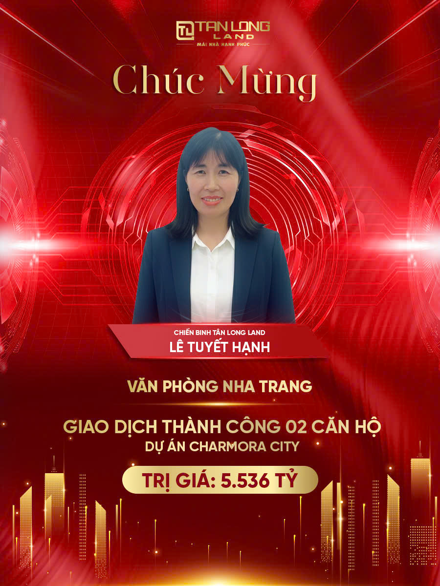 - Chiến Binh Lê Tuyết Hạnh - VP Nha Trang Bán 02 căn trị giá 5.536 tỷ VNĐ