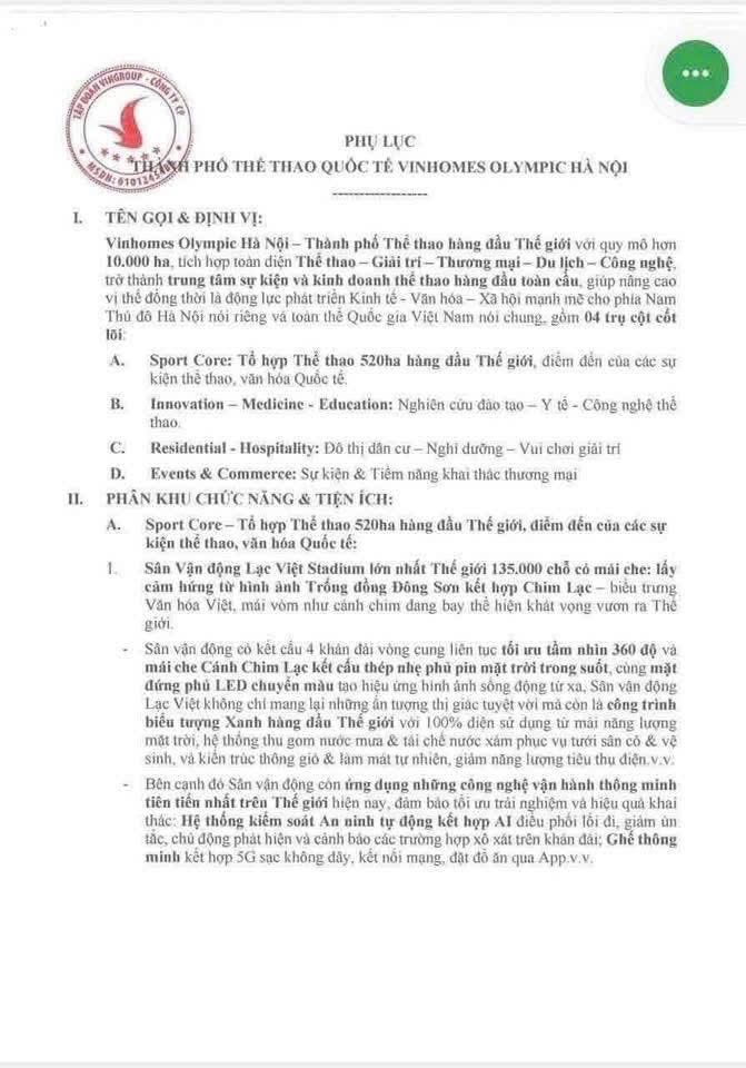 Dự án được quy hoạch bài bản, kết hợp hài hòa giữa Thể thao – Giải trí – Thương mại – Du lịch – Giáo dục – Công nghệ, hình thành một trung tâm sự kiện và kinh doanh thể thao hàng đầu toàn cầu ngay tại phía Nam Thủ đô.