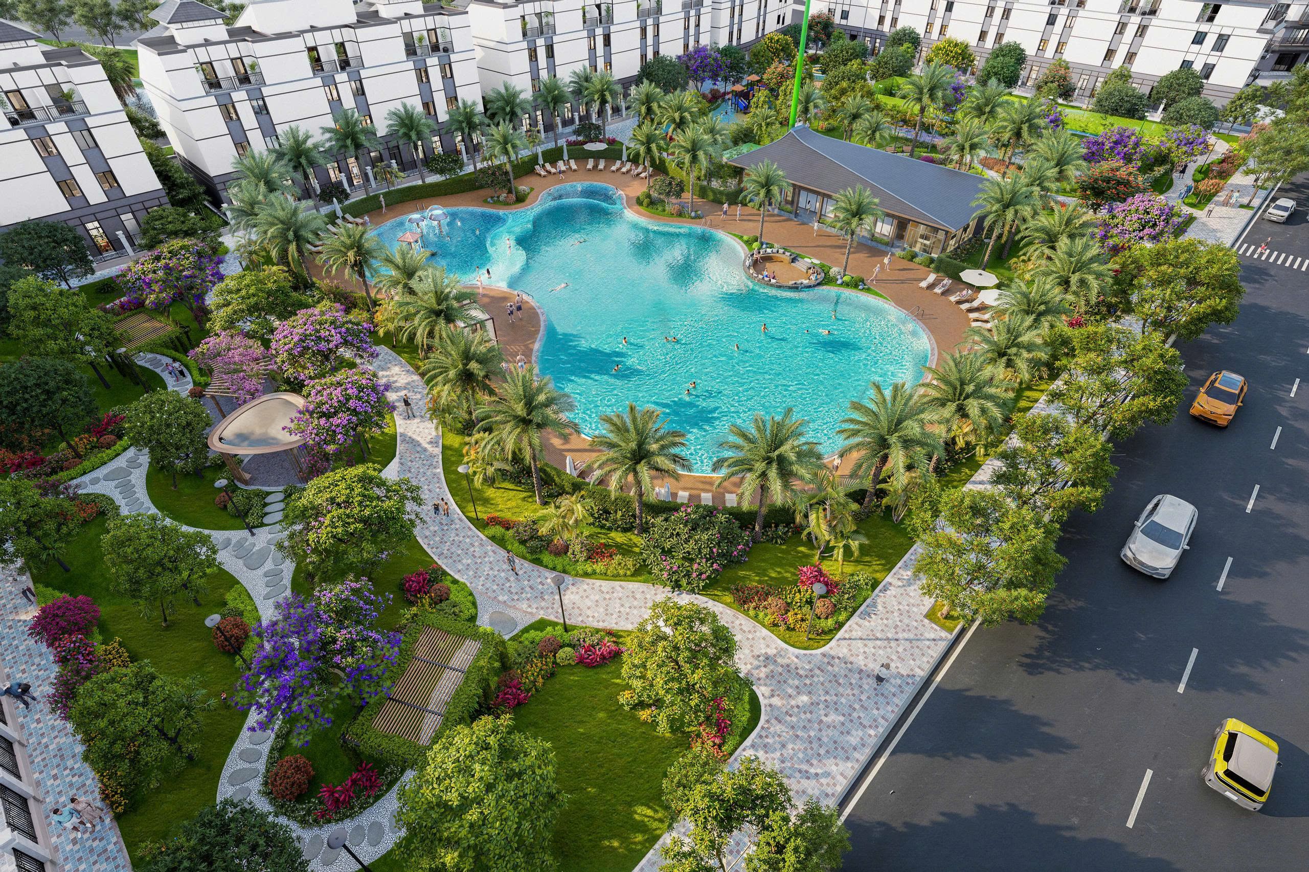 - Nhà liền kề: 3–5 tầng, diện tích 75–120 m², bố trí trung tâm và dọc trục chính, thuận tiện kinh doanh và sinh hoạt.