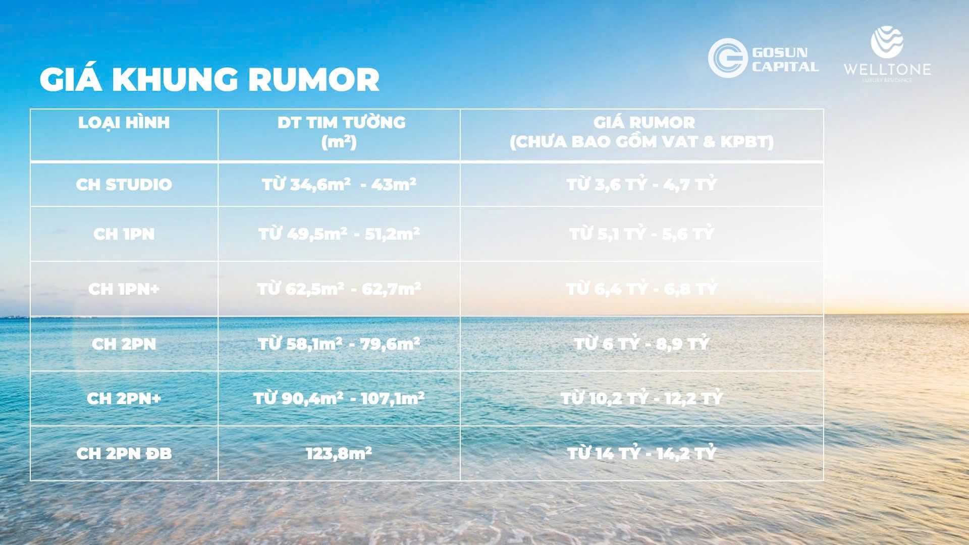Giá bán chung cư Welltone Luxury Residence Nha Trang (THAM KHẢO - RUMOUR)